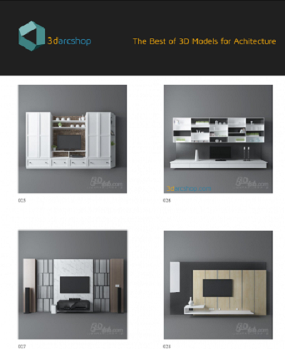 3darcshop - TV & Media Furniture 01-64 consists of 64 interior models with various designs and styles.